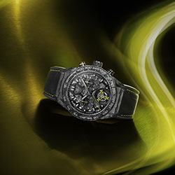 - Идеальных концентрических колебаний удалось достичь благодаря геометрии балансовой спирали из карбонового композита, что повысило точность хода часов.