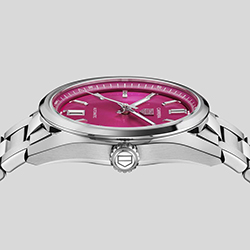 TAG Heuer Carrera Date в ярком розовом исполнении - это стильный вызов, который невозможно оставить без внимания. Часы воплощают дерзкий характер и утонченную женственность, объединяя легендарное швейцарское качество с яркой индивидуальностью. Эта модель символ уверенности, энергии и современной элегантности всегда прекрасной леди. Яркий градиентный циферблат с эффектом спиральной шлифовки и выразительными стрелками, покрытыми белым составом Super-LumiNova®, создаёт эффектное сочетание, привлекающее внимание с первого взгляда.