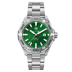 Модель Aquaracer с корпусом диаметром 43 мм имеет уникальный зеленый циферблат с эффектом sunray. Горизонтальные линии, украшающие циферблат, напоминают деревянный причал, вдоль которого мерно качаются парусники. На циферблате есть указатель даты, а индексы, безель и треугольный указатель на отметке «12 часов» покрыты черным лаком. Модель женской коллекции с корпусом диаметром 32 мм обладает таким же ярким циферблатом, а ее индексы украшены бриллиантами. На циферблате также есть указатель даты и треугольный указатель на отметке «12 часов» для оптимальной считываемости времени. Корпус и ремешок новых Aquaracer выполнен из нержавеющей стали. Мужская модель с корпусом 43 мм оснащена автоматическим механизмом Calibre 5, а женская модель обладает кварцевым механизмом.
