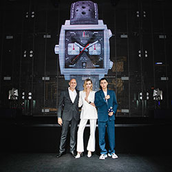 Прибывающие на презентацию гости сразу погрузились в особый мир в стиле Monaco. Уже на входе их вниманию представлены специальные «капсулы времени», с помощью которых можно перенестись в любое из четырех десятилетий, олицетворяющих часы юбилейных серий. После показа фильма о коллекции Monaco и зрелищного шоу, основанного на игре света и тени, амбассадор бренда Ли Ифэн продемонстрировала гостям часы пятой лимитированной серии, символизирующие второе десятилетие XXI века.