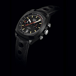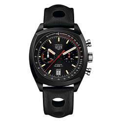 В-третьих, комплектация чёрным перфорированным ремешком из натуральной кожи. Смена поколений отражена в увеличении диаметра корпуса с 39 мм до 42 мм, замене стали на титан, а также чёрного PVD-покрытия – на покрытие из карбида титана. Кроме того, современная версия часов «Tag Heuer Monza» оснащена не только тахиметрической шкалой для измерения скорости, но и пульсометром для измерения сердечного ритма.