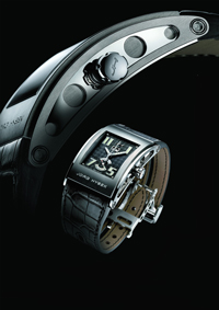 Третья идея - заключенный в специальный кожух корпус V-King. Чтобы открыть механизм, не нужно открывать традиционную заднюю крышку, а достаточно открутить боковые винты, похожие на гильзы от пуль, и вытащить механизм, как ящик, с правой стороны корпуса. Еще - мы одна из немногих мануфактур, которая привинчивает сапфировое стекло.